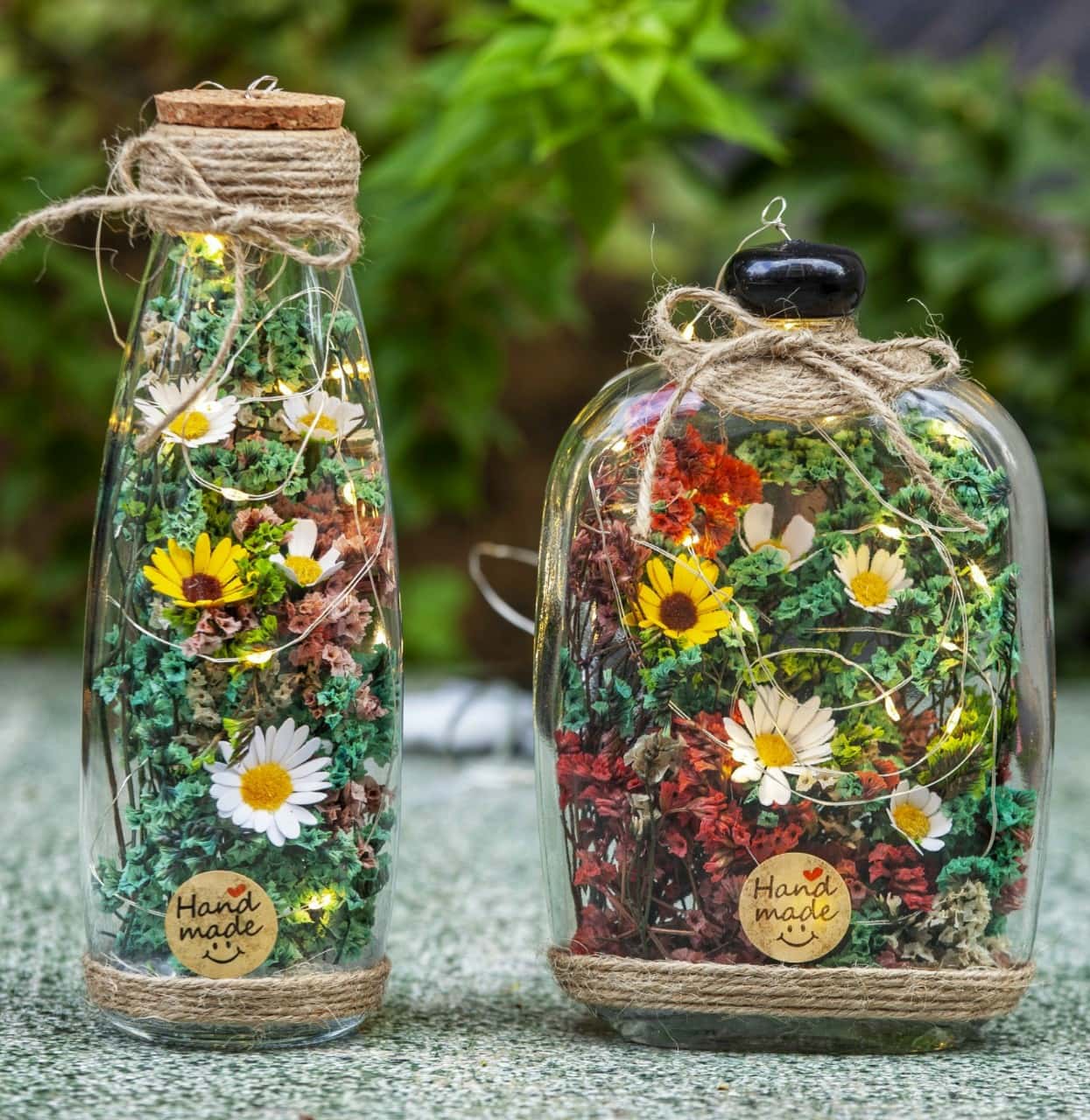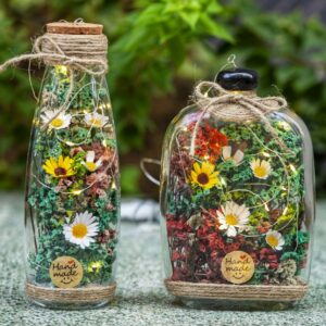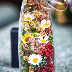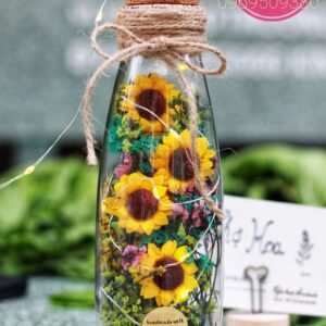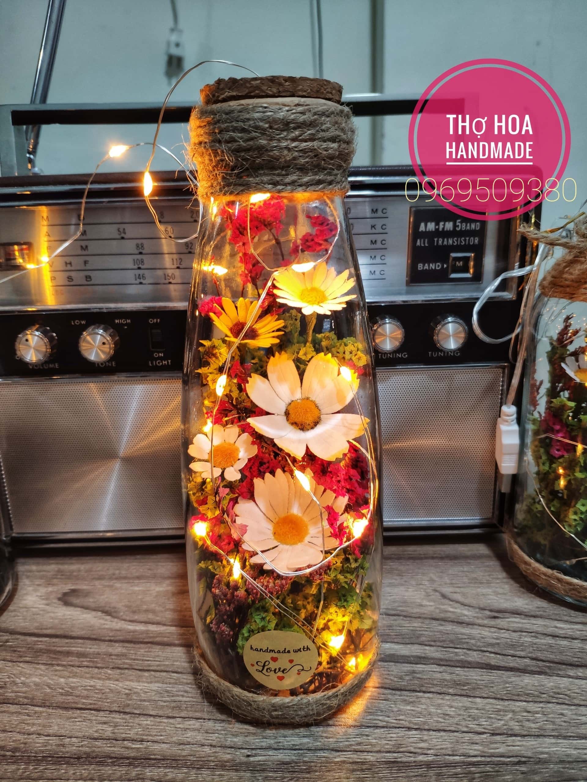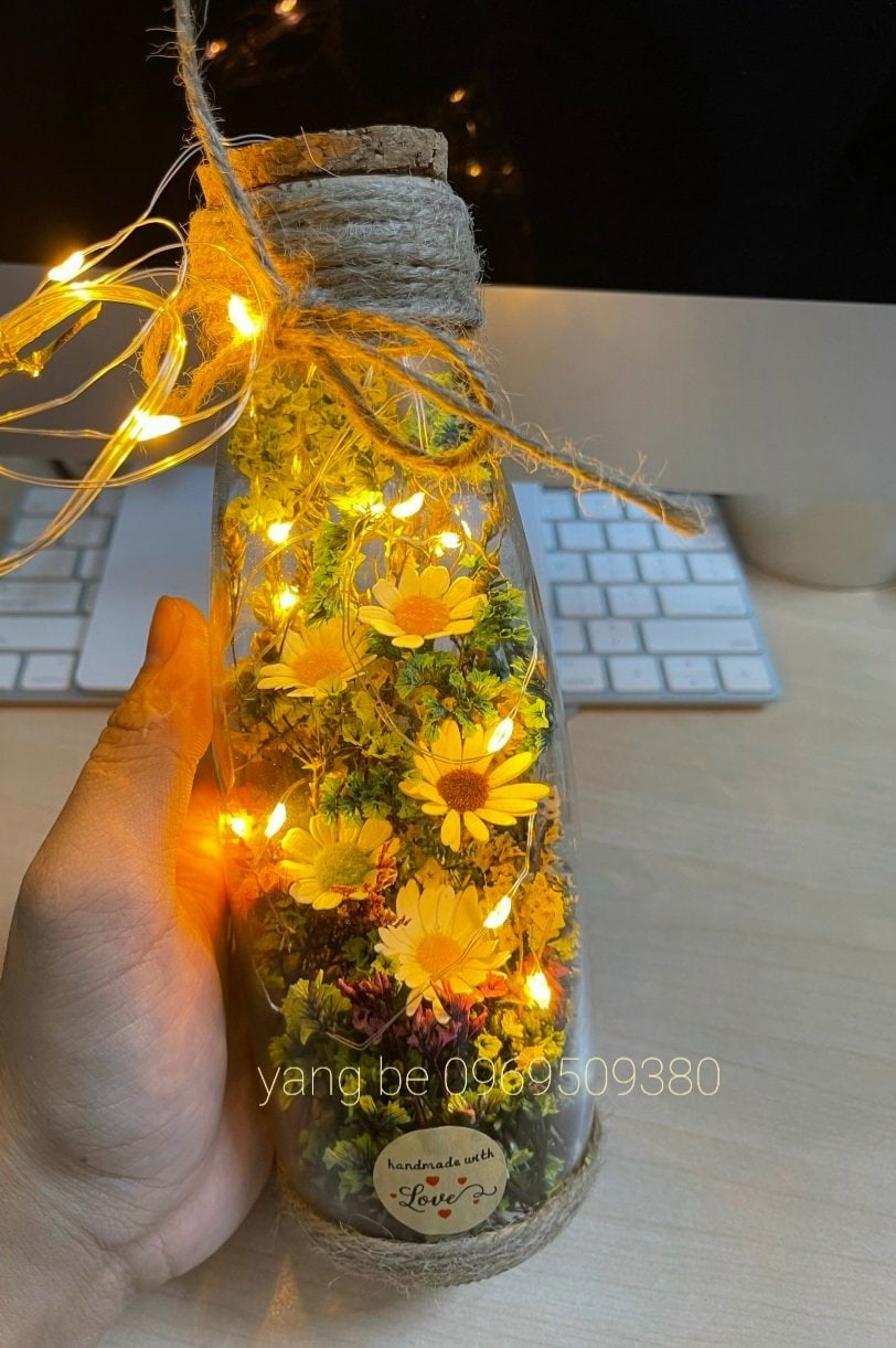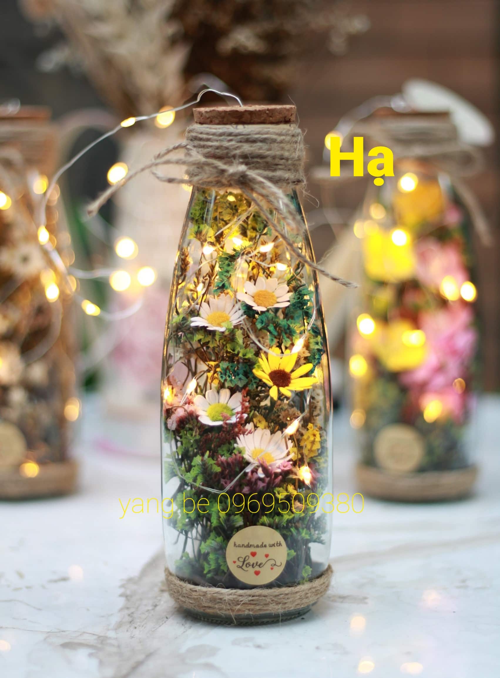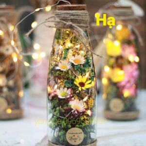 Dưới đáy lọ là các hạt chống ẩm, Hoa sao khô và hoa cúc họa mi giấy được cố định vị trí bên trong lọ, đảm bảo ko bị dịch chuyển ko bị lệch vị trí, bố cục hài hòa, xinh xắn