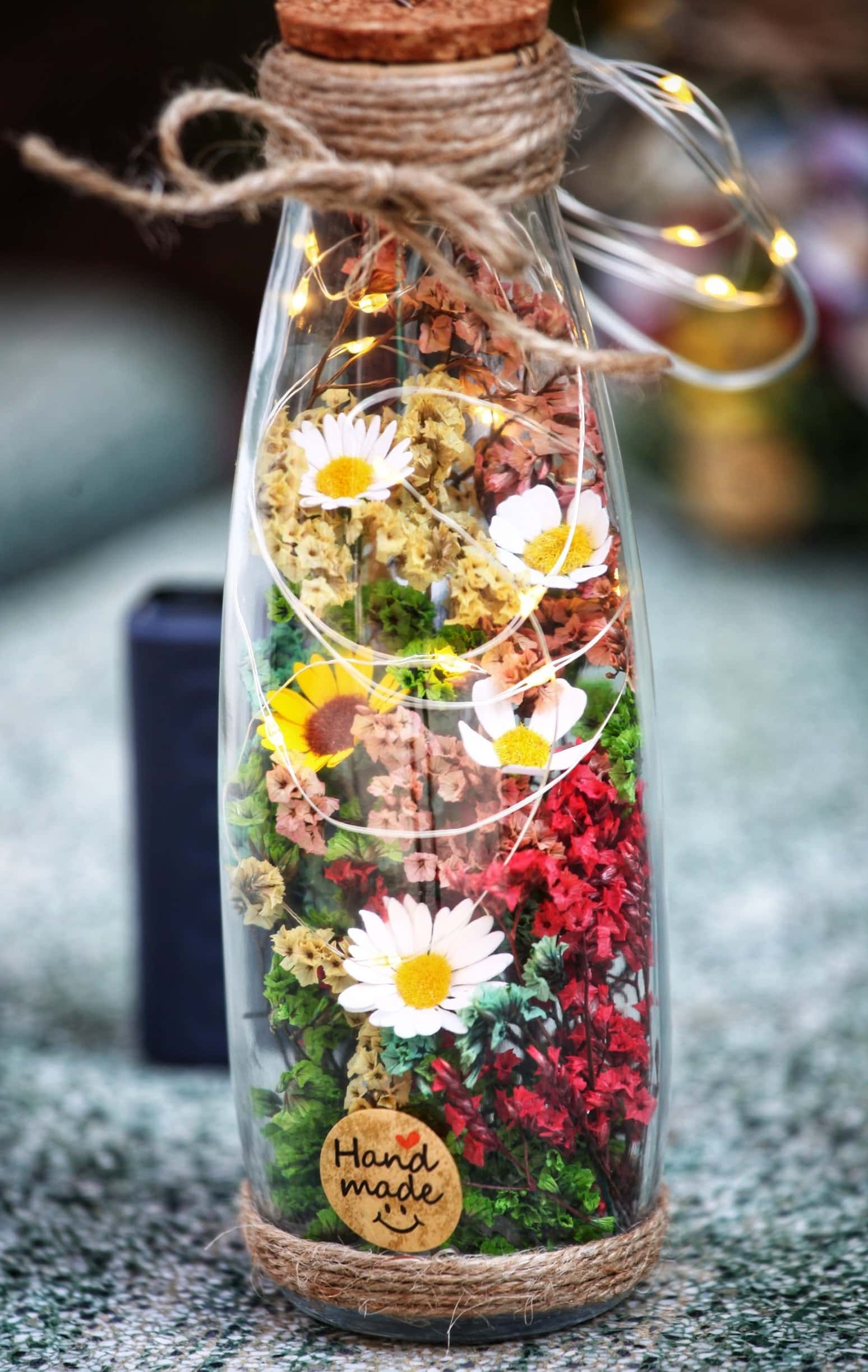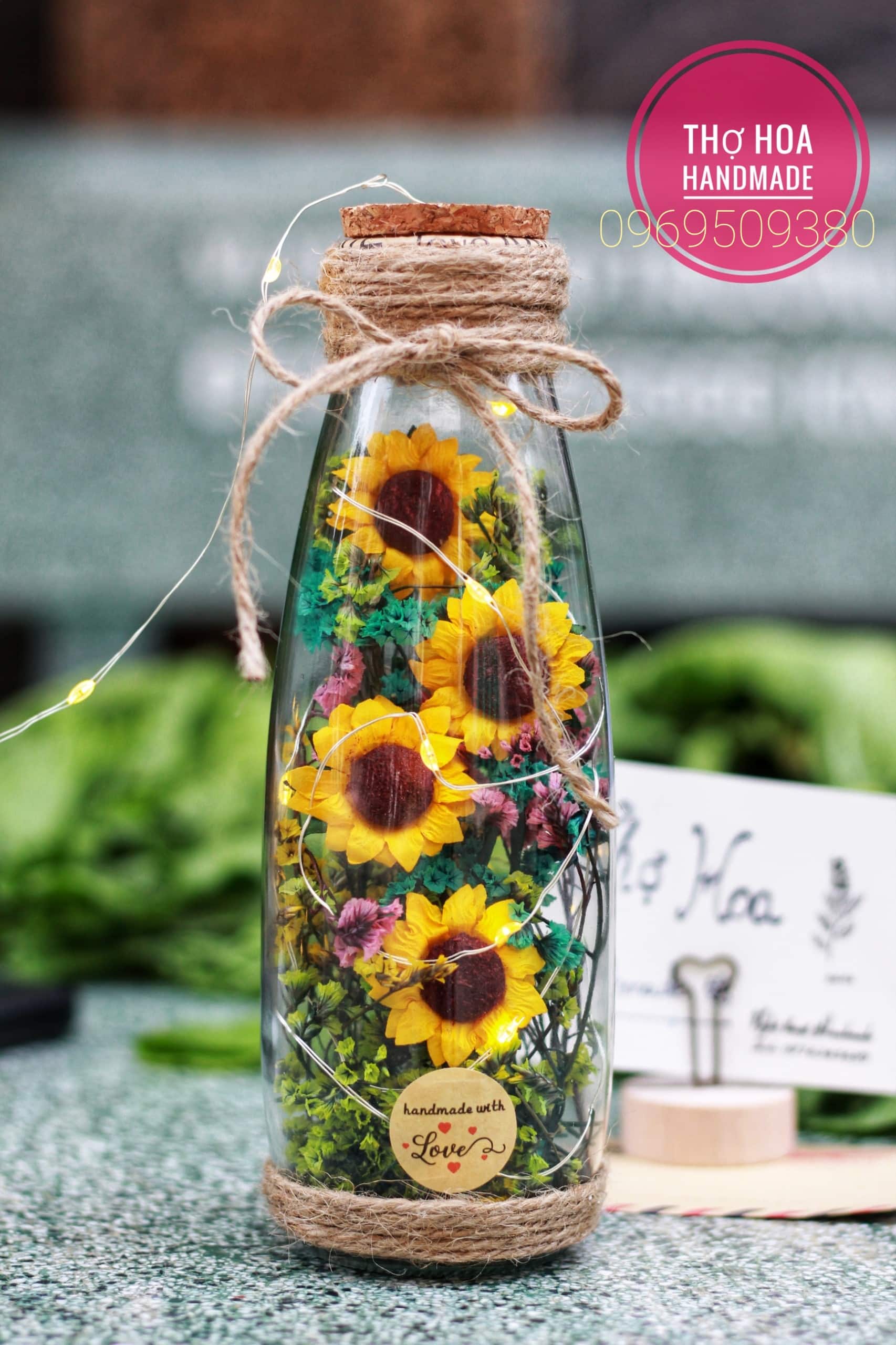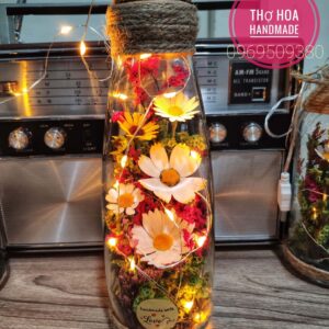 – Hoa trong lọ là hoa khô và hoa giấy handmade