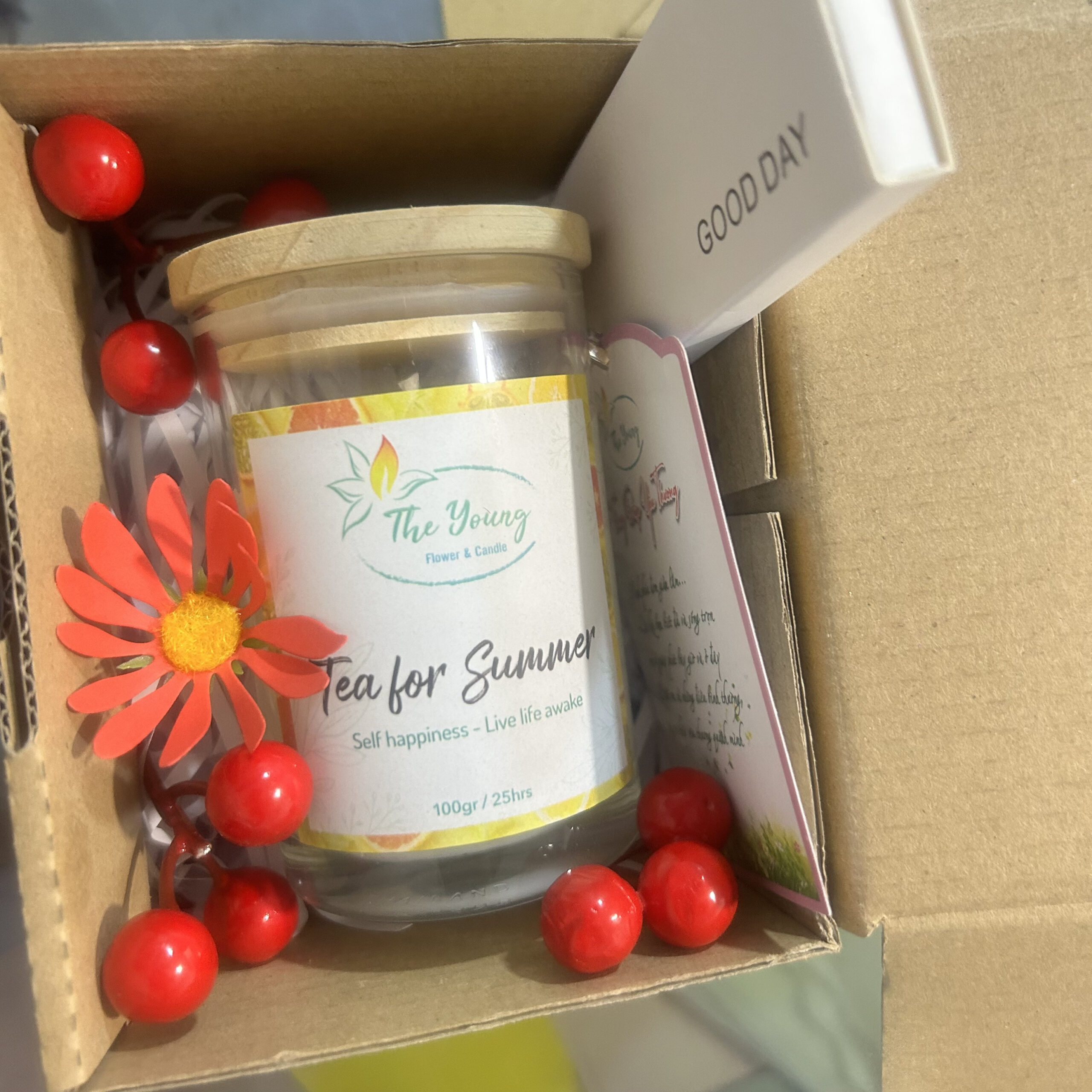 Hộp quà Nến Thơm nhỏ gồm 1 cốc nến thơm 100gr sử dụng được hơn 1 tháng, nến 1 bấc cho không gian dưới 9m2