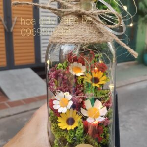 – Hoa trong lọ là hoa khô và hoa giấy handmade