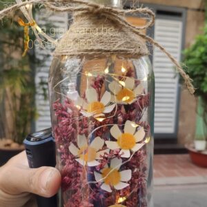 Dưới đáy lọ là các hạt chống ẩm, Hoa sao khô và hoa cúc họa mi giấy được cố định vị trí bên trong lọ, đảm bảo ko bị dịch chuyển ko bị lệch vị trí, bố cục hài hòa