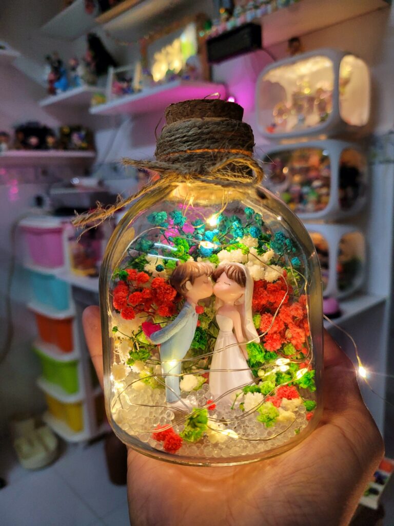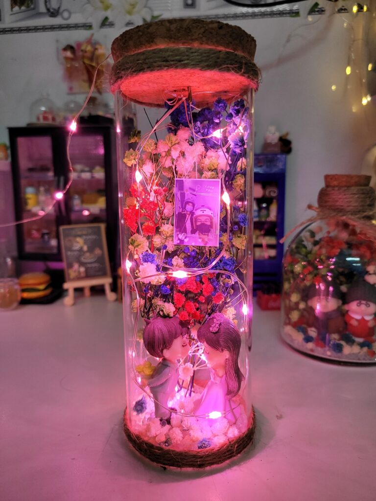 Lọ hoa thủy tinh có đèn dùng làm quà tặng người yêu rất ư là dễ thương luôn, quà tặng sinh nhật là 1 món quà đậm chất handmade và sáng tạo, tính nghệ thuật cao, đèn và hoa sáng lấp lánh tạo sự lãng mạn trong tình yêu lứa đối, rất là phù hợp để thể hiện tình yêu